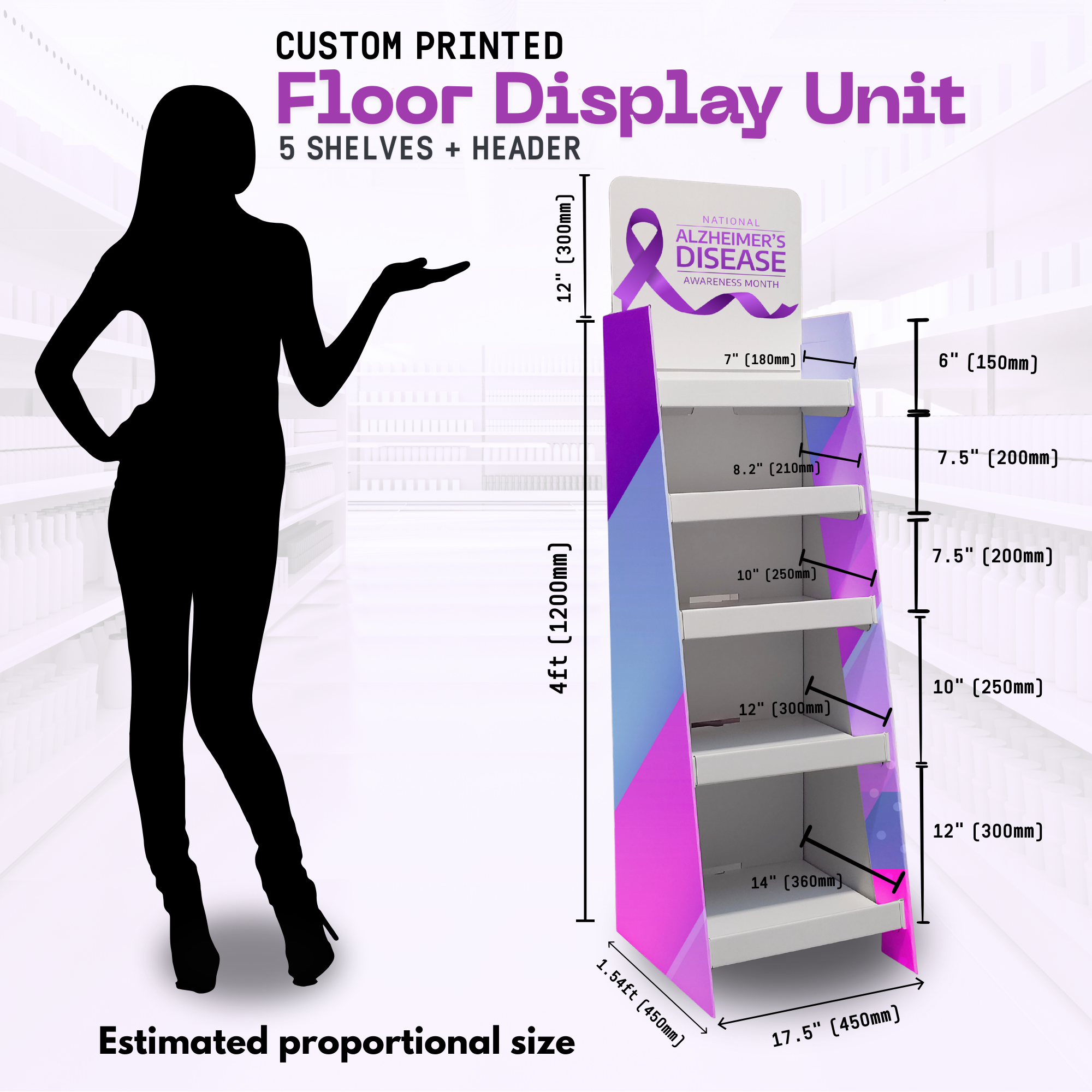 Custom Printed 5 Shelves Floor Stand Retail Display Unit FSDU 4ft tall