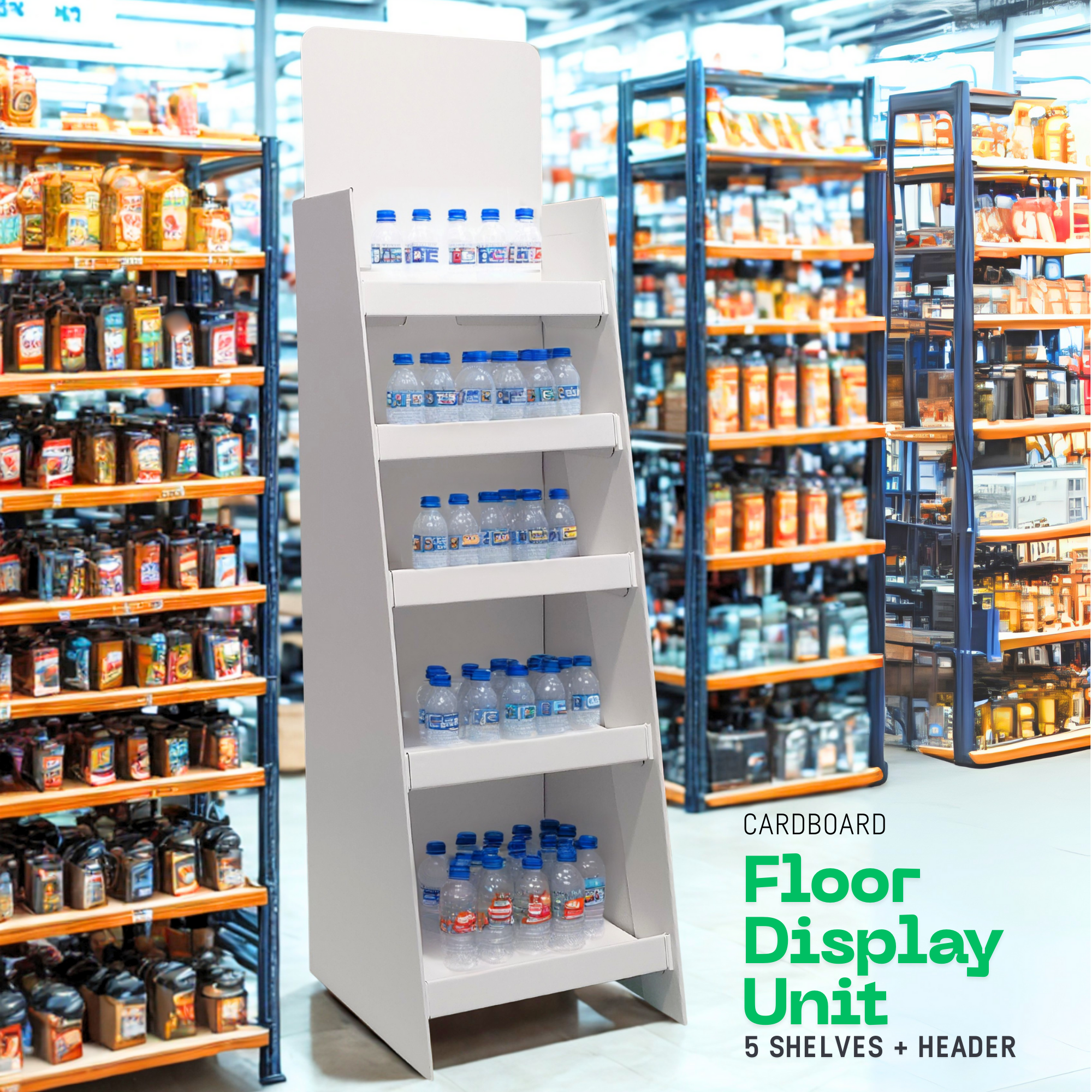 White Cardboard POS Floor Stand Display 4 Shelf Unit FSDU
